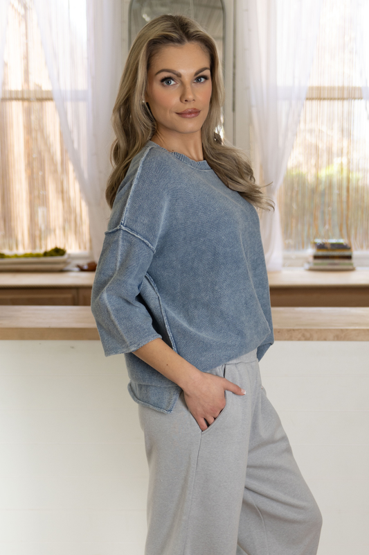 Washed 3/4 Sleeve Sweater