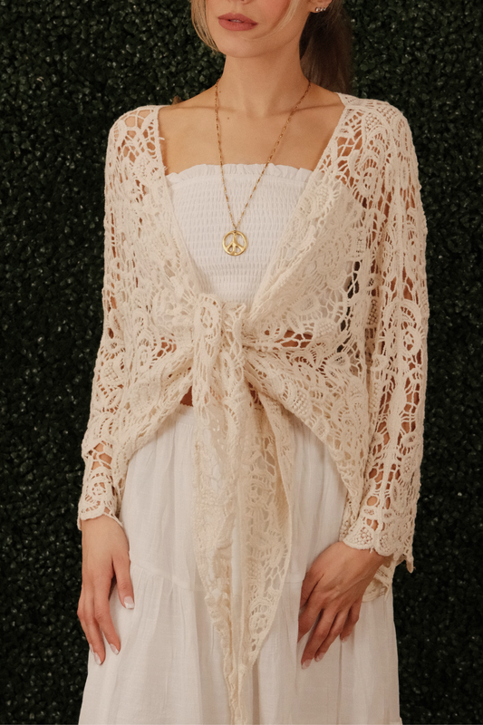 Sold outCrochet Bell Sleeve Tie Top