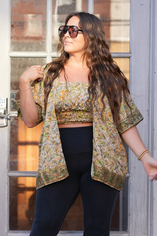 Recycled Sari Print Smock Top
