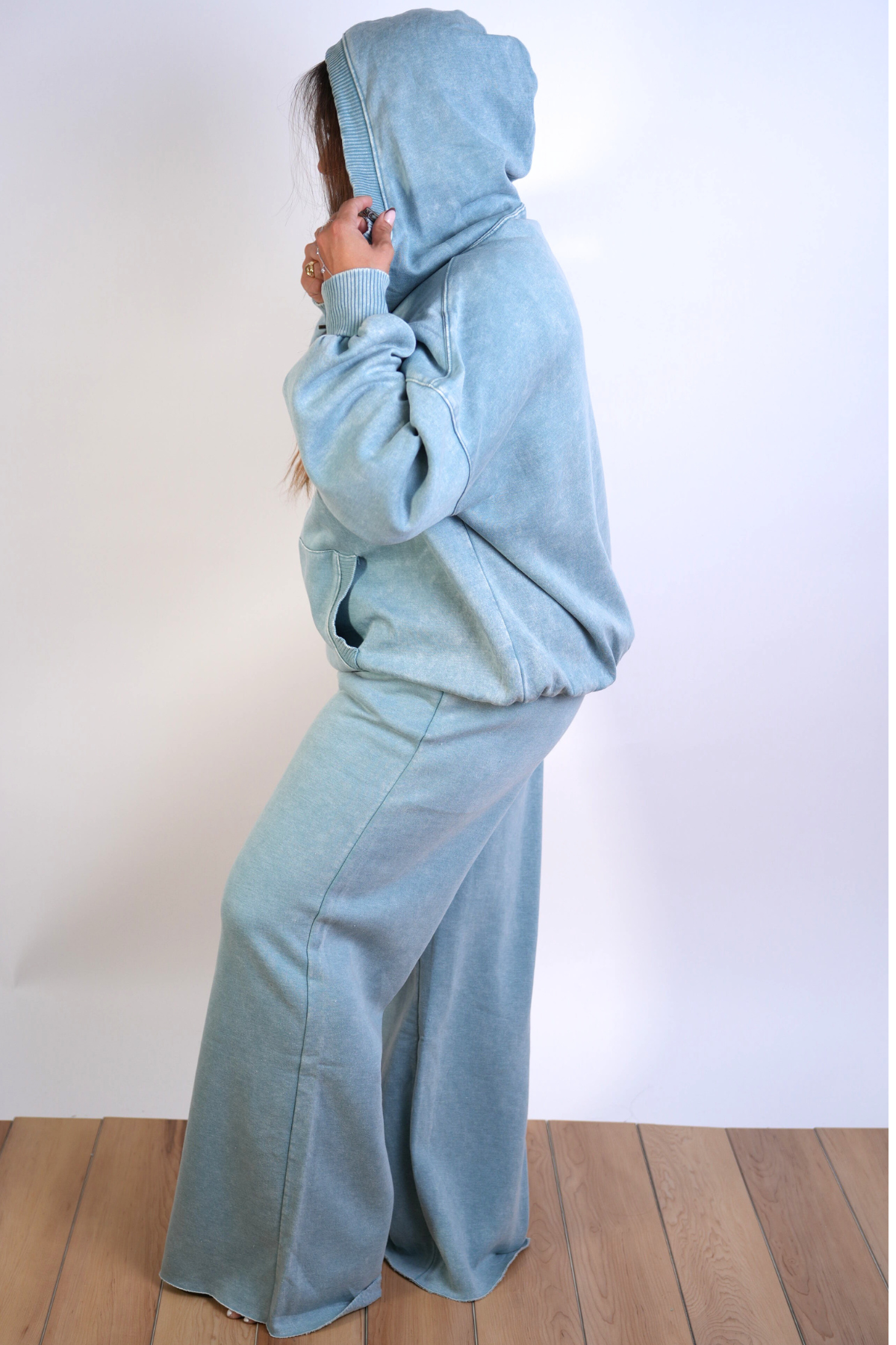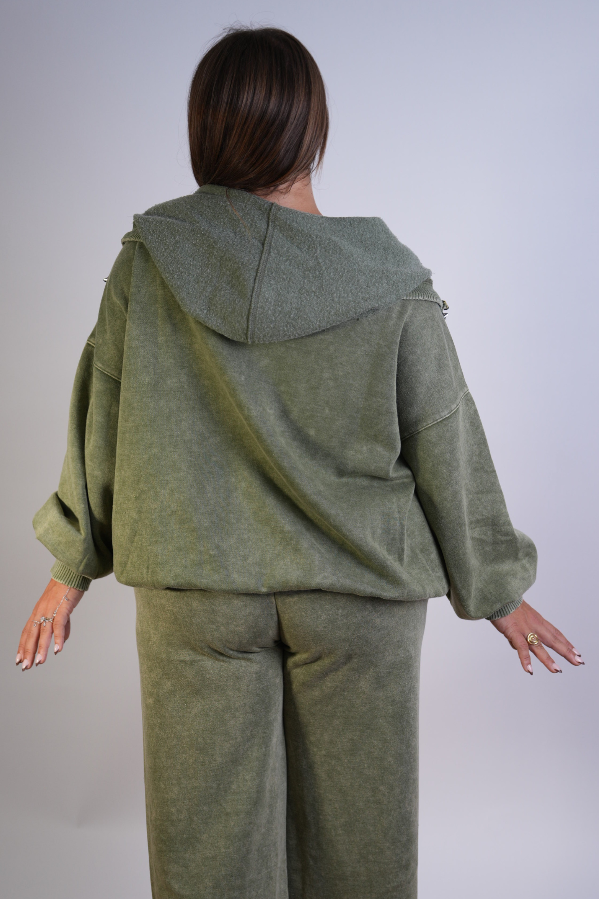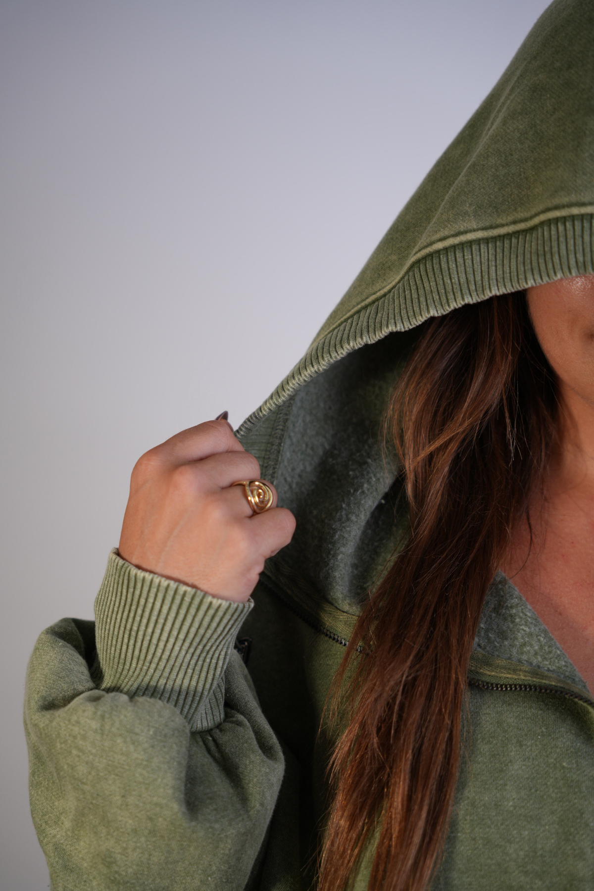 The Quarter Zip Hoodie is an easy, go-to layer you can quickly throw on. Combine it with our raw hem sweatpants for a simple, comfortable outfit perfect for travel or relaxing at home.