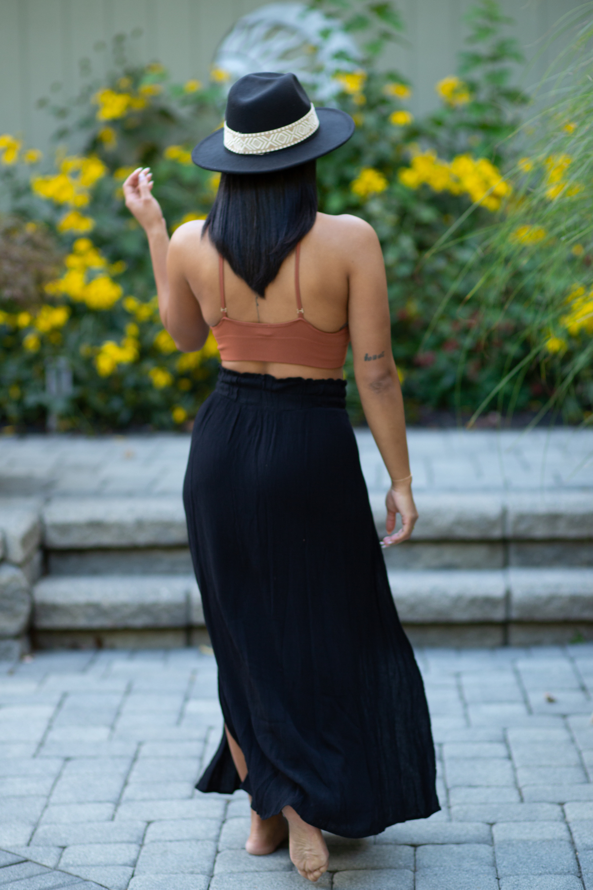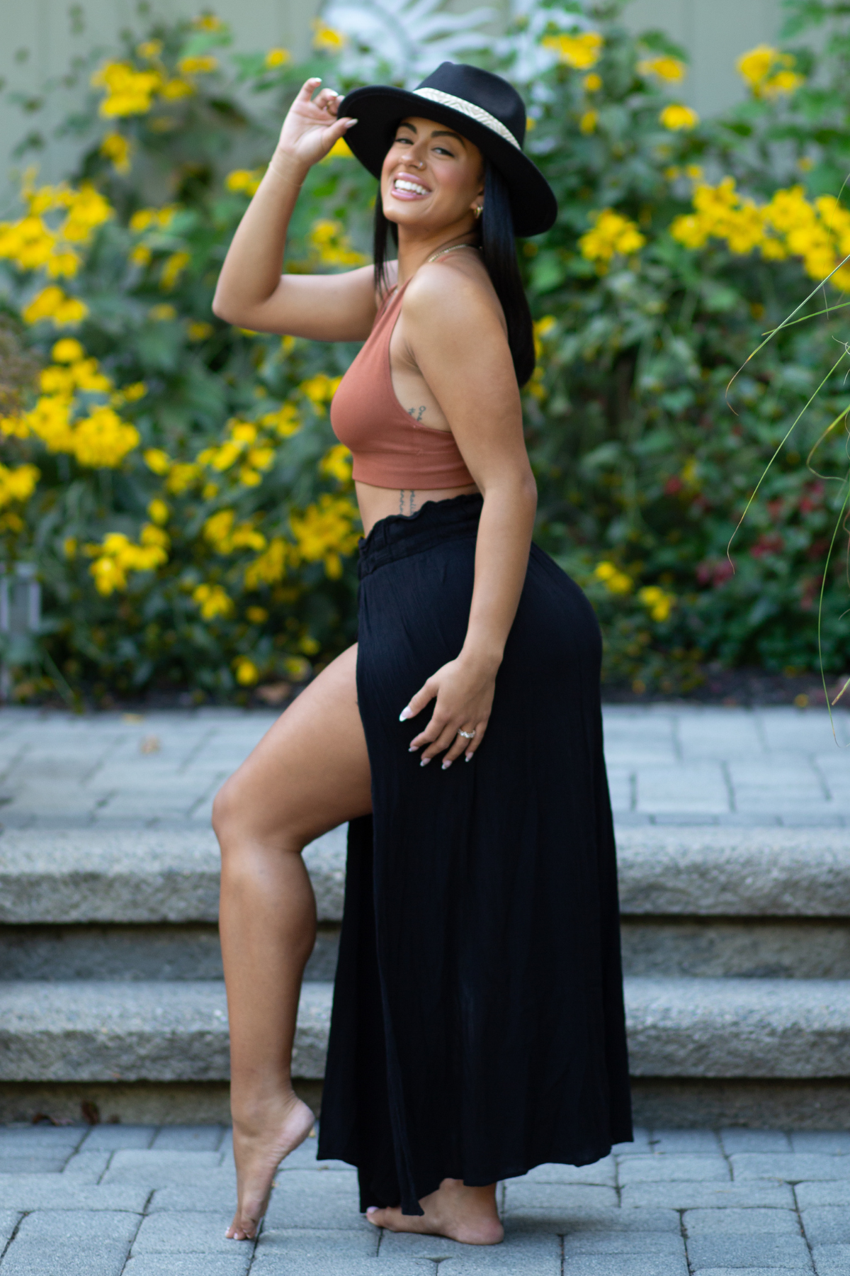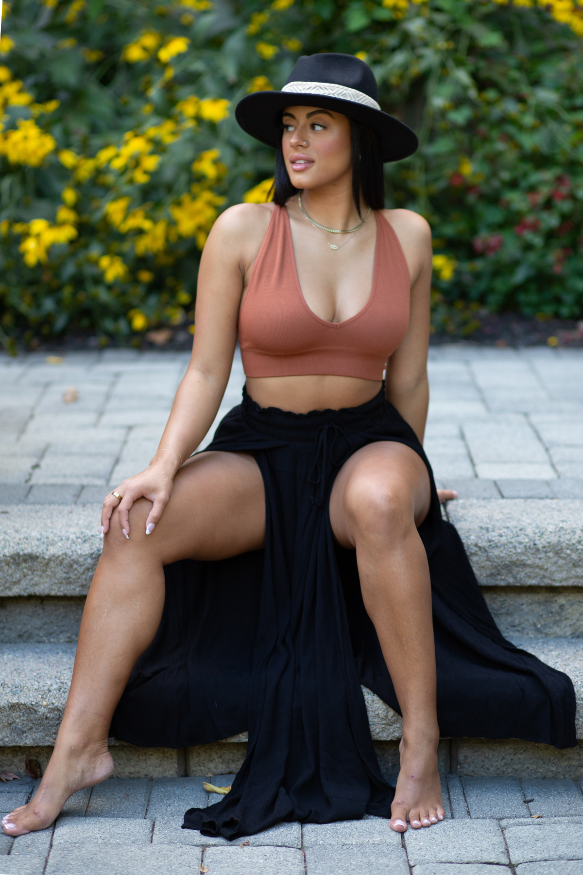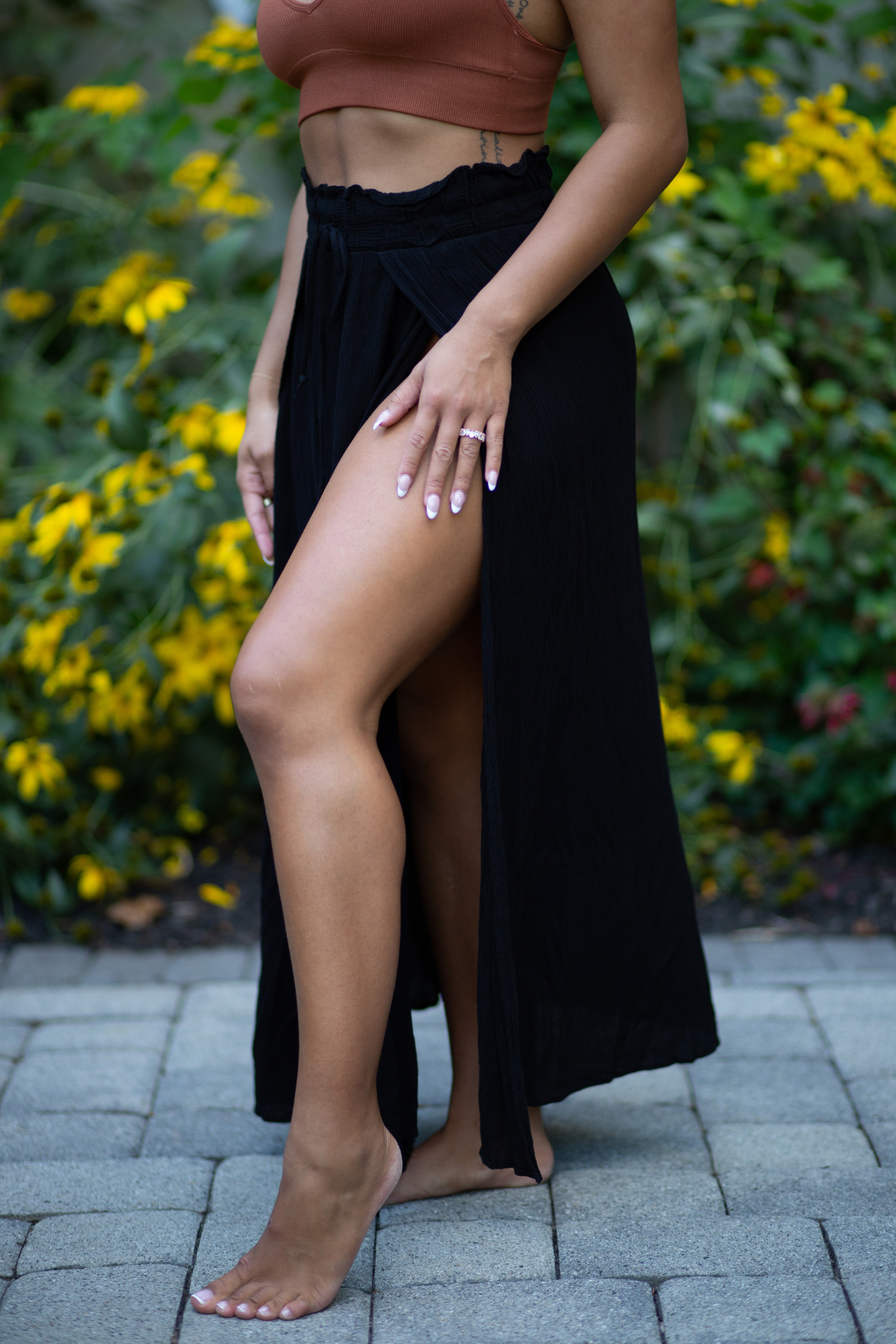 Double slit thigh high maxi skirt.